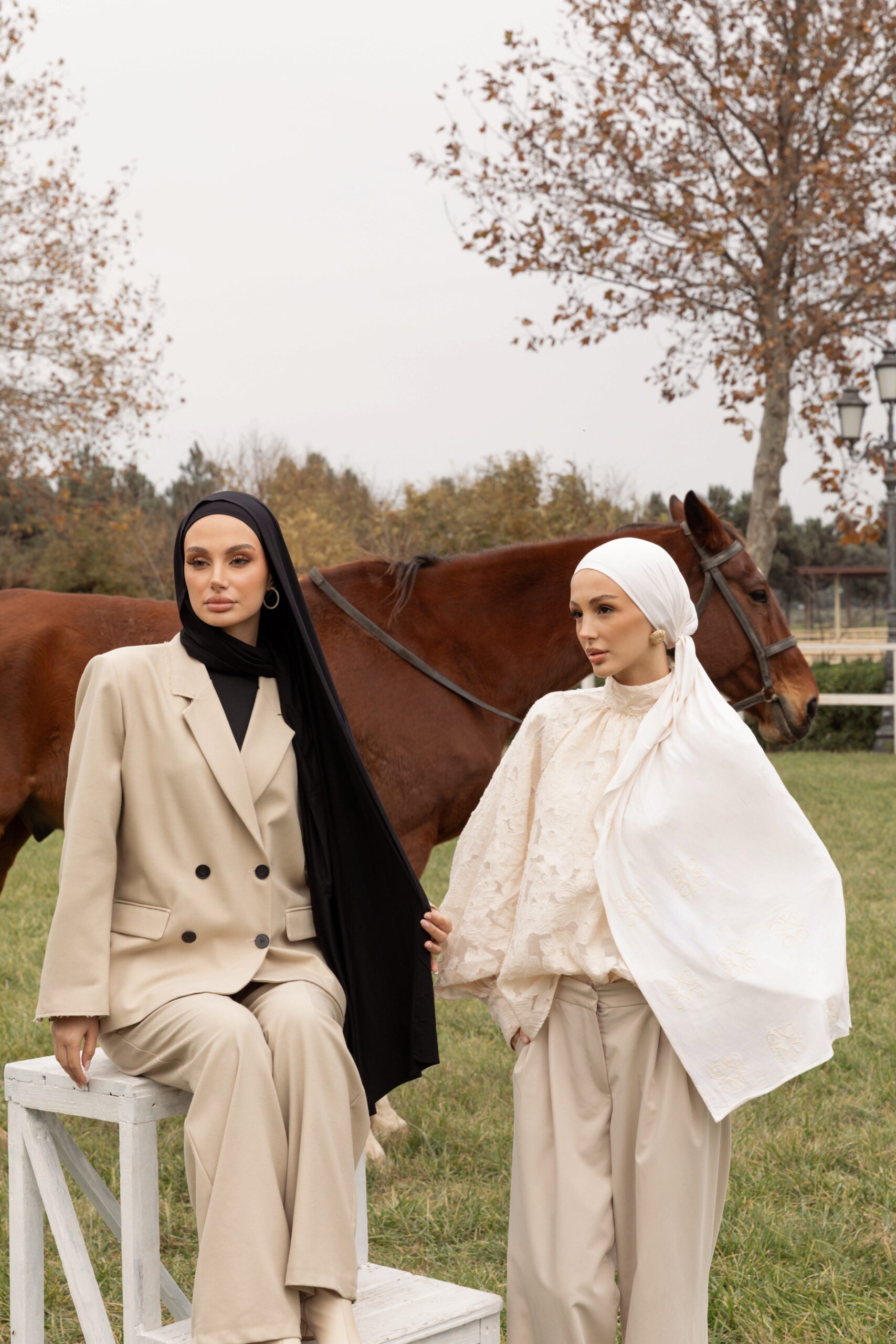 Our Bamboo Jersey Scarf is the perfect blend of softness and versatility. Made from breathable bamboo jersey fabric, it offers a silky-smooth feel with a natural stretch that drapes effortlessly. Its lightweight design ensures full coverage while remaining comfortable for all-day wear. Finished with a luxurious velvet logo print, the scarf combines understated elegance with a refined, premium touch.